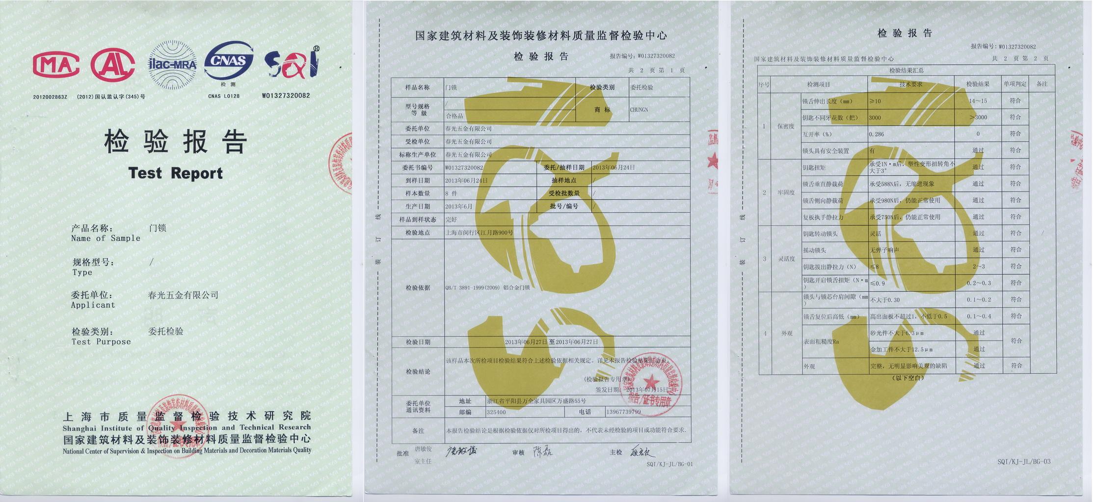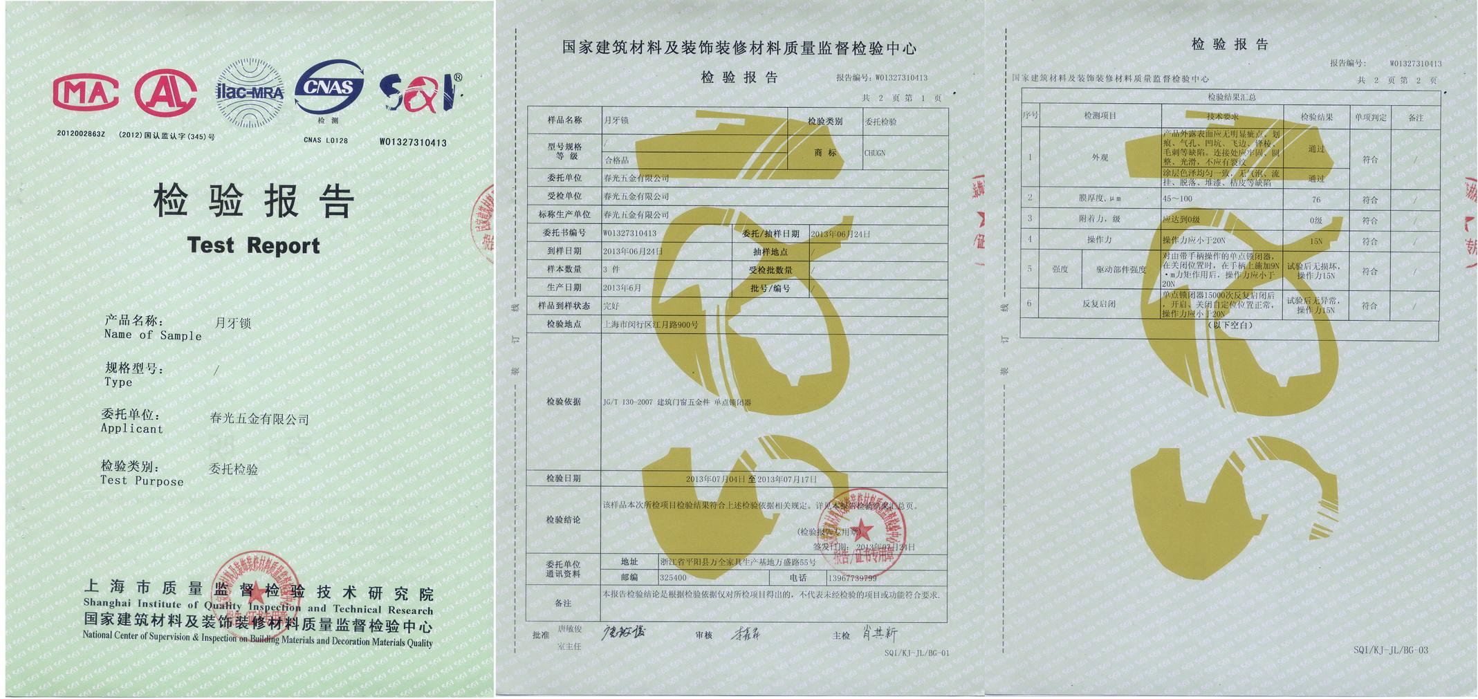 月牙鎖檢驗報告 |