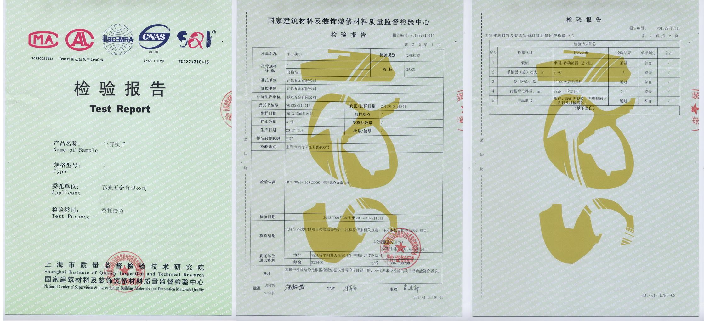平開執(zhí)手檢驗報告 |