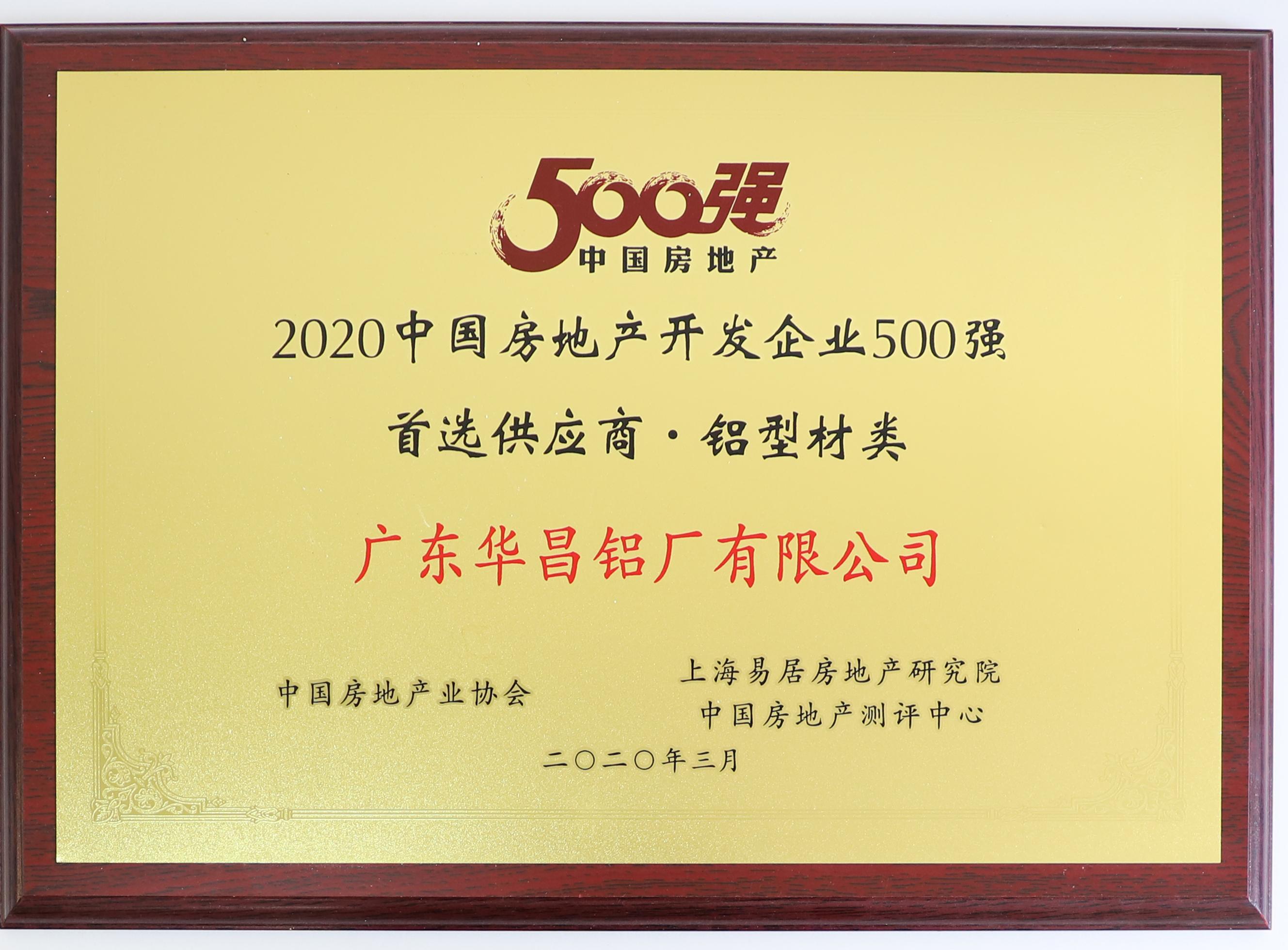 2020中國房地產(chǎn)開發(fā)企業(yè)500強首選供應商鋁型材類 |