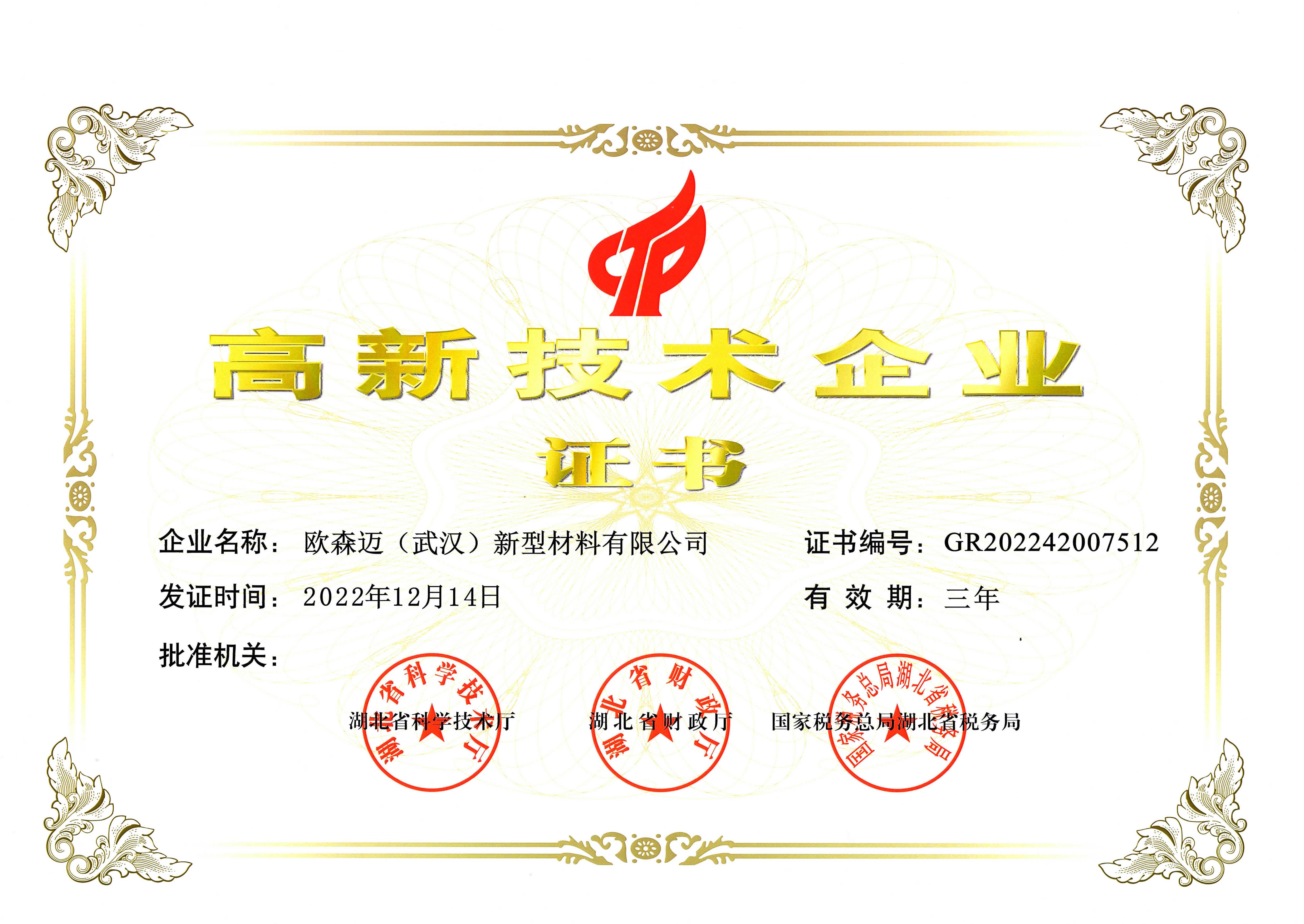 高新技術企業(yè)證書 |