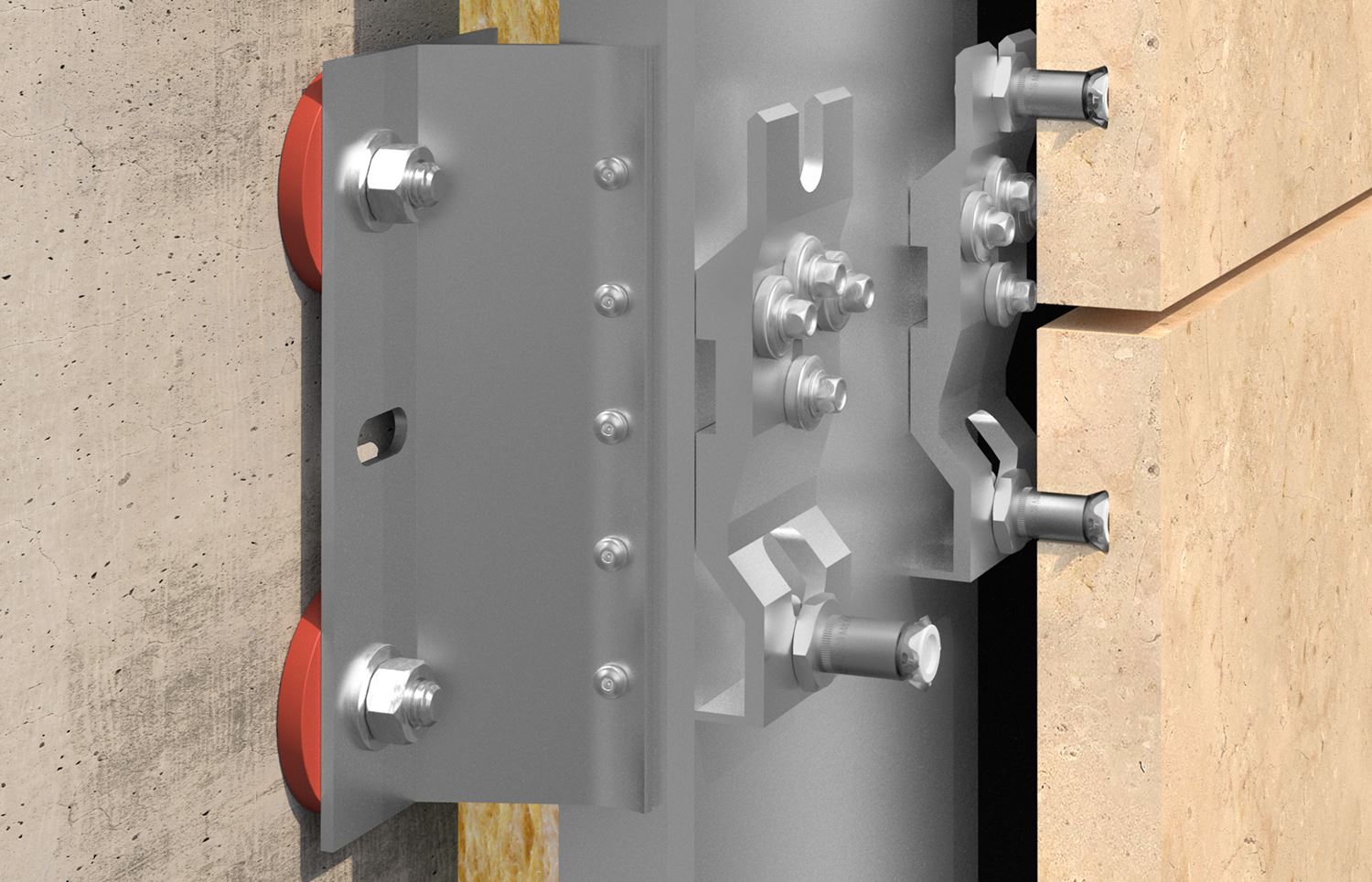 建筑外立面使用了明亮的德國米黃(Jura)石灰石面板、鋁立面及玻璃。各種尺寸的天然石材由位于德國巴伐利亞的VeroStone公司提供。總計約1600平方米(18000平方英尺)的石材面板用于外立面幕墻和內裝飾墻上的安裝。板材重量大是對幕墻安裝工程的一個巨大挑戰。除了明尼阿波利斯M.A.Mortenson建筑公司外,負責安裝應用的各方還包括來自美國威斯康星州負責技術規劃的LarsonEngineering公司,以及負責施工的GrazziniBrothers公司。慧魚背栓FZPII13x26M8/VS/4AL最終被選擇應用于該項工程。錨栓和鋁合金龍骨支撐系統由慧魚在美國的幕墻系統合作伙伴PROBERainscreen幕墻系統公司提供。