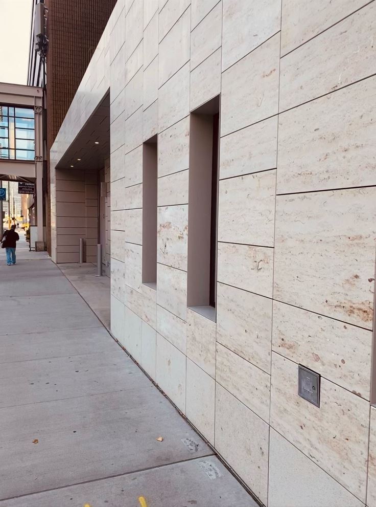 慧魚鎖扣式背栓FZPIIVS配合U型掛件龍骨系統將天然石板固定在明尼阿波利斯服務大樓的幕墻外立面上,該款產品具有高度的永久安全性,同時通過其隱蔽的固定點提供美學優勢。