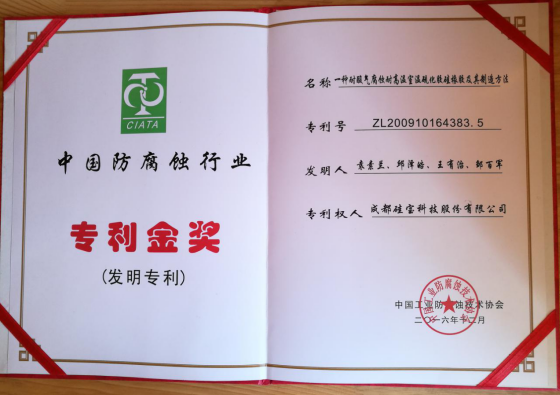 會上,中國工業防腐蝕技術協會會長潘小潔以《履行使命,勇于擔為》為題作大會報告,秘書長李濟克作“協會七屆二次理事擴大會工作報告”。會議同期公布了“2015年度中國防腐蝕行業專利獎”,本次參評的申報項目經中國工業防腐蝕技術協會獎勵評審委員會評審,最終有四項專利獲得“2016年度中國工業防腐蝕協會專利獎”,其中金獎1項,優秀獎3項。值得一提的是,硅寶科技研發的“一種耐酸氣腐蝕耐高溫室溫硫化膠硅橡膠及其制造方法”項目從眾多參評項目中脫穎而出,一舉斬獲“發明專利金獎”。