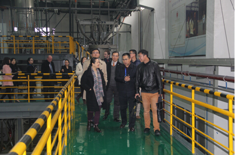 王有治總裁陪同考察團參觀自動化生產線