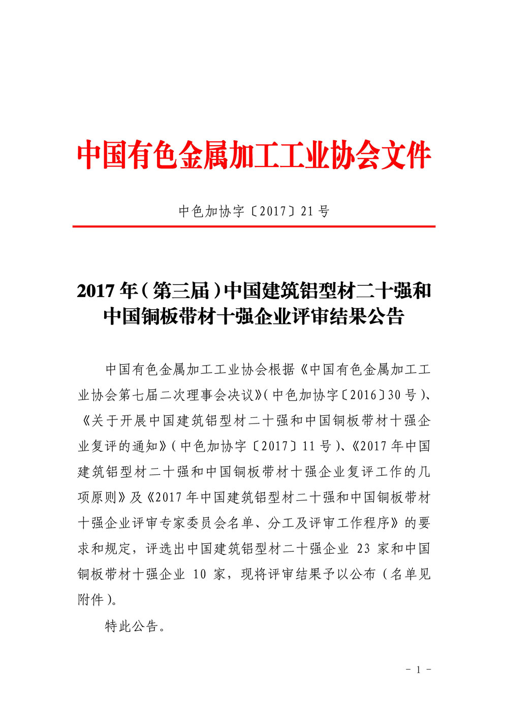 2017年第三屆中國建筑鋁型材二十強