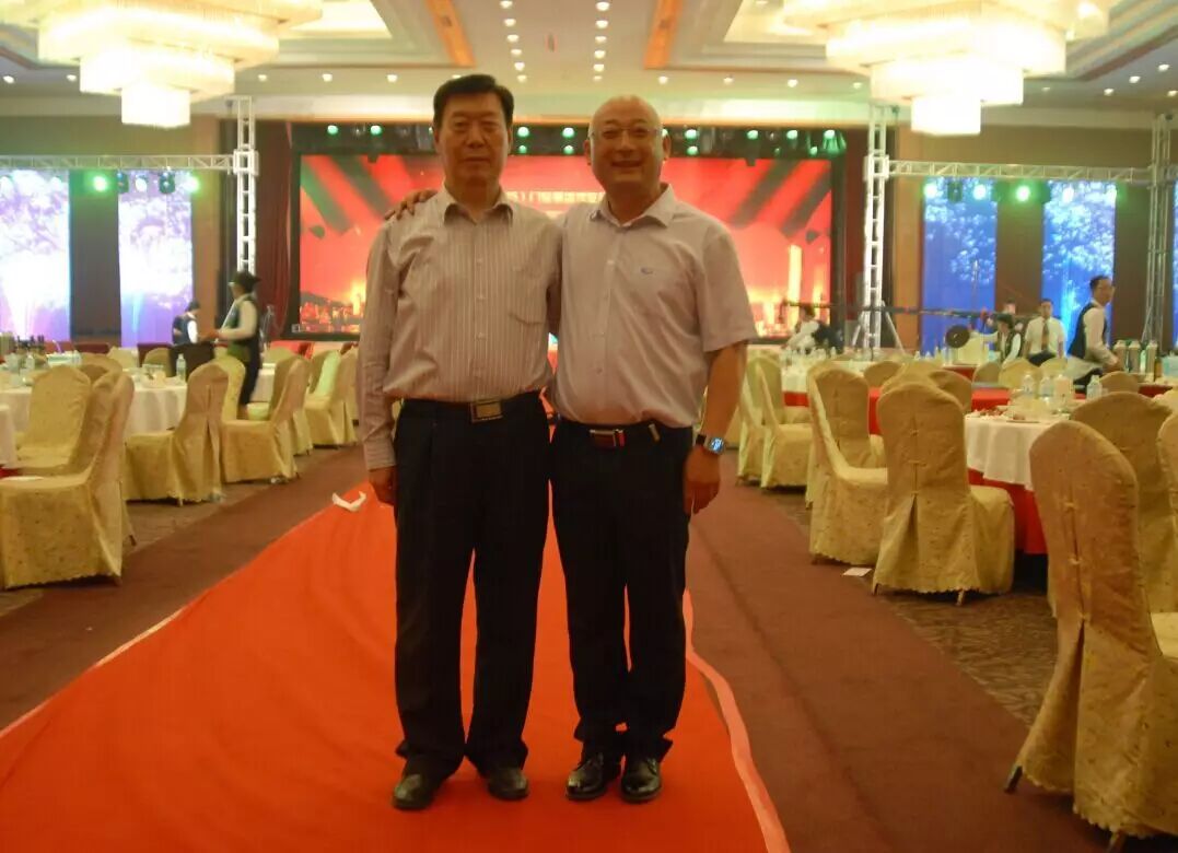 ↑中國建筑金屬結(jié)構(gòu)協(xié)會名譽(yù)副會長、山東省建設(shè)機(jī)械協(xié)會會長張永光,飛度膠業(yè)總經(jīng)理丁大宏合影留念