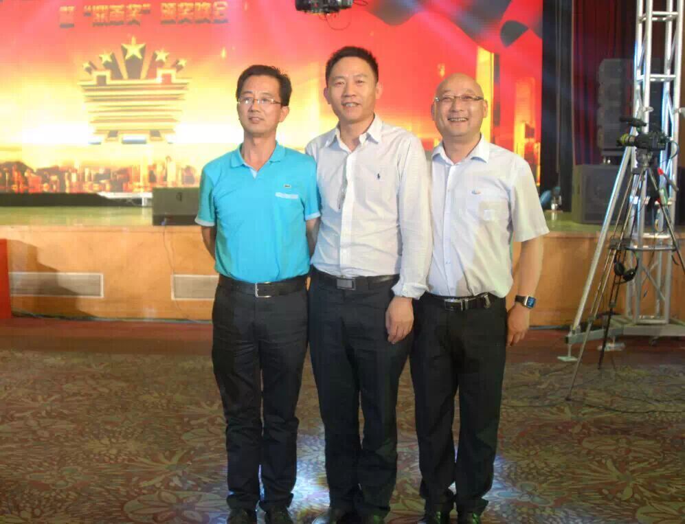 ↑山東智贏門窗系統(tǒng)有限公司董事長王令軍,德國GT五金中國首席代表薛順東,飛度膠業(yè)總經(jīng)理丁大宏合影留念