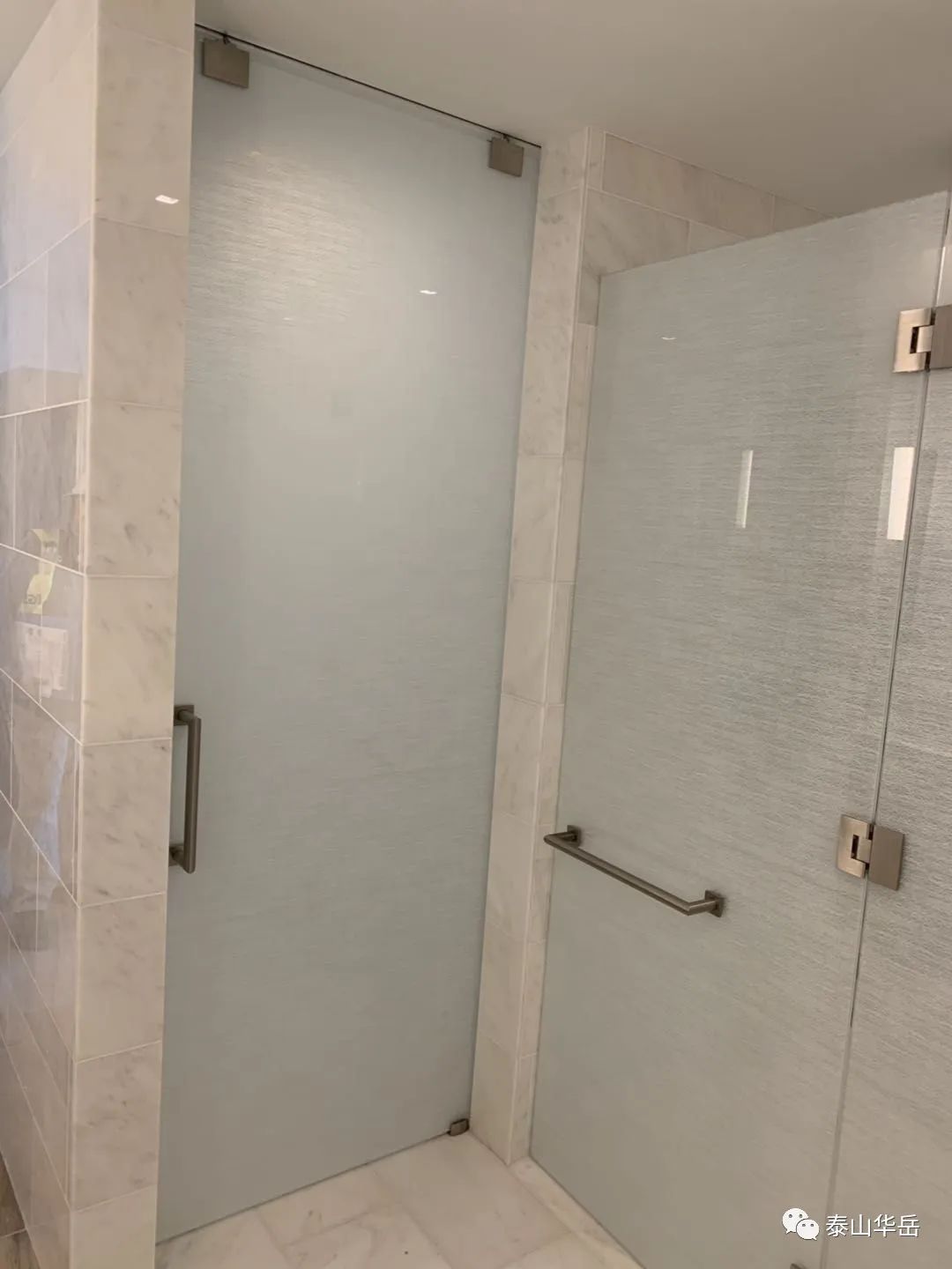 內裝方面,酒店內所有內裝隔斷、淋浴房等均采用世界最新進的數碼打印夾層玻璃,美觀時尚,共計6000多平方,該數碼打印玻璃均由我司(山東泰山華岳玻璃有限公司)加工生產。