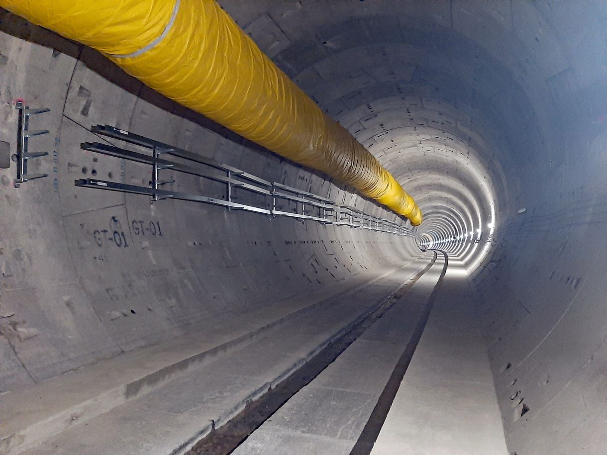 整個鐵路線幾乎都建在地面之上,由混凝土柱支撐。只有一段4.7公里長的路線,將在塞拉斯克魯斯山脈下的隧道中進入地下敷設,其中包括一條雙洞隧道的建設。雙洞隧道由預制混凝土構件制成。設計師在隧道中設計了符合安全標準的應急通道,引導乘客進入緊急出口。這樣人們就能在危險的情況下逃出隧道。走道用鋼板加固,這些鋼板被牢固地安裝在混凝土中,使用了約19,000顆慧魚后膨脹螺桿錨栓FAZII。