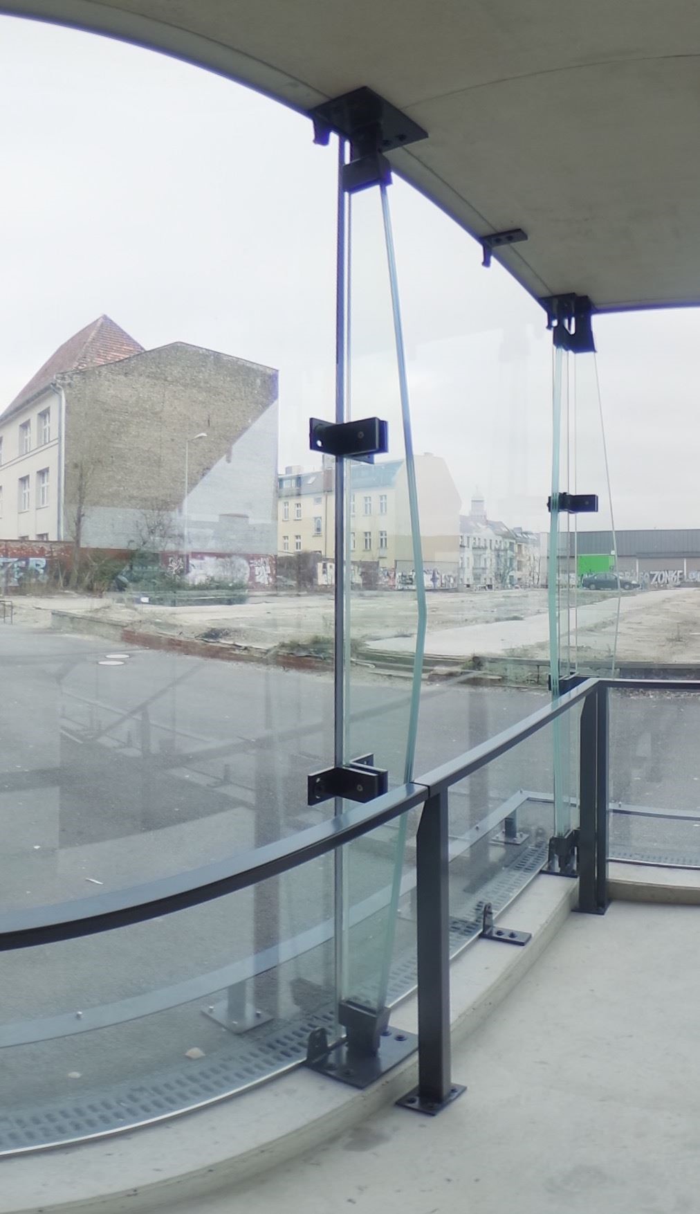 由慧魚公司、GIPGLAZINGGmbH公司以及BGTBischoffGlastechnikAG公司三家合作開發(fā)的新型幕墻點式結(jié)構(gòu),為整棟建筑幕墻的設(shè)計理念得以實現(xiàn)提供了基礎(chǔ)。“玻璃肋”被用作支撐結(jié)構(gòu)。這是增加幕墻透明感的一個有力元素,作為垂直的玻璃肋截面細長但強度高并具有。這些玻璃肋無結(jié)構(gòu)支撐,從地面一直延伸到天花。結(jié)合慧魚簡約的玻璃背栓FZP-G,使用玻璃肋而非金屬龍骨連接從而打造出一個流動的、充滿生機的空間。慧魚的玻璃背掛技術(shù),讓大面積的玻璃幕墻得以呈現(xiàn)完整單塊透明玻璃的效果,從而使柏林全景一覽無遺。特殊的切底技術(shù),在玻璃上鉆相應(yīng)地孔,這意味著背栓不穿透整塊玻璃面板,卻能安全、牢固地將玻璃面板固定在支撐結(jié)構(gòu)上。