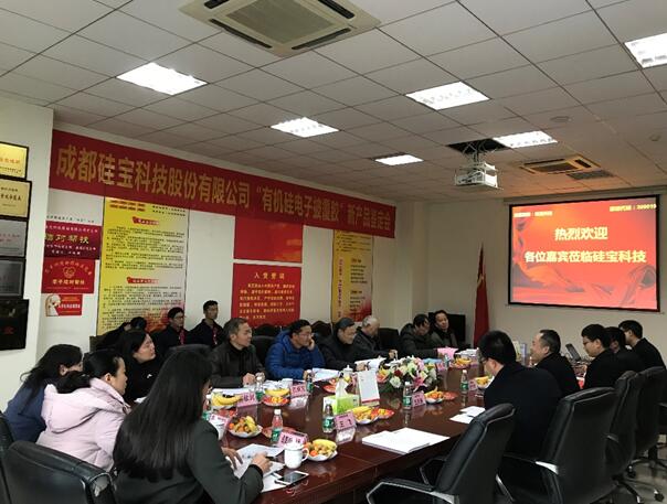 | 2018年12月21日,成都硅寶科技股份有限公司“有機硅電子披覆膠”順利通過了由四川省經濟與信息化廳組織的四川省新產品鑒定。鑒定委員會由來自中國科學院成都有機化學研究所、中國電子科技集團公司第十研究所、電子科技大學、四川大學、成都理工大學、四川省橡膠協會、國家合成樹脂質量監督檢測中心的7名專家、教授組成。硅寶科技總裁李步春、副總經理黃強出席鑒定會,李步春總裁代表公司對與會領導、專家及嘉賓表示熱烈歡迎。