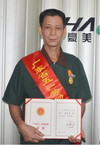 4月30日上午,廣東省慶祝“五一”國際勞動節暨勞模表彰大會在廣州舉行,來自豪美鋁業熔鑄車間的員工李六友,榮獲2014年“廣東省五一勞動獎章”稱號,并得到省委書記胡春華、省長朱小丹、省人大常委會主任黃龍云的親切接見與頒獎。 “廣東省五一勞動獎章”,是經全省各級工會組織自下而上的逐級推薦評選和全國總工會、省總工會而審定,是勞動者的至高榮譽,是勞動者典范和楷模的美稱。豪美鋁業熔鑄車間員工李六友,自1991年1月入職我司,23年來,腳踏實地、兢兢業業,不僅在崗位上做好本職工作,還積極發揚創新精神,憑借累積多年的豐富現場生產經驗,對熔鑄設備做了很多改進,為公司發展做出貢獻。 勞動創造美,勞動使世界充滿希望,勞動改變人類的發展進程,勞動是一首永恒的贊歌,讓我們以李六友為勞動表率,大力弘揚“愛崗敬業、爭創一流,艱苦奮斗、勇于創新,淡泊名利、甘于奉獻”的勞模精神,凝心聚力,以實際行動共同譜寫豪美新篇章。