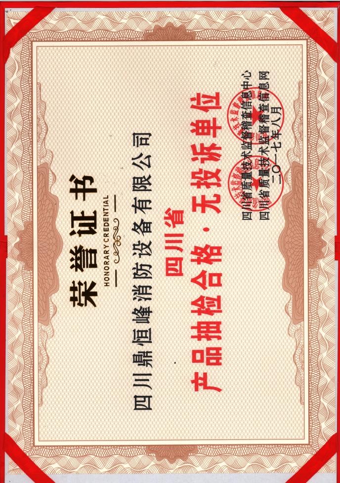 證書名稱: 四川省產品抽檢合格.無投訴單位
