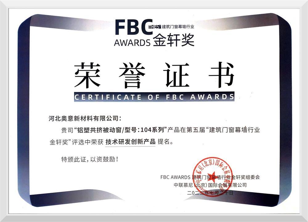FBC AWARDS 建筑門窗幕墻行業(yè)金軒獎(jiǎng)組委會(huì) |