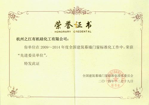 2009-2014年度全國建筑幕墻門窗標準化(先進委員單位)證書 |