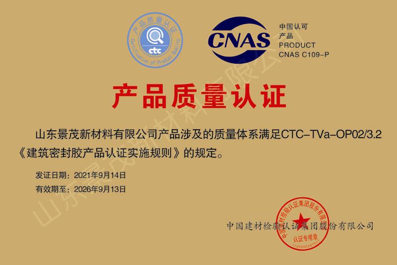 CTC產(chǎn)品質(zhì)量認(rèn)證證書 |