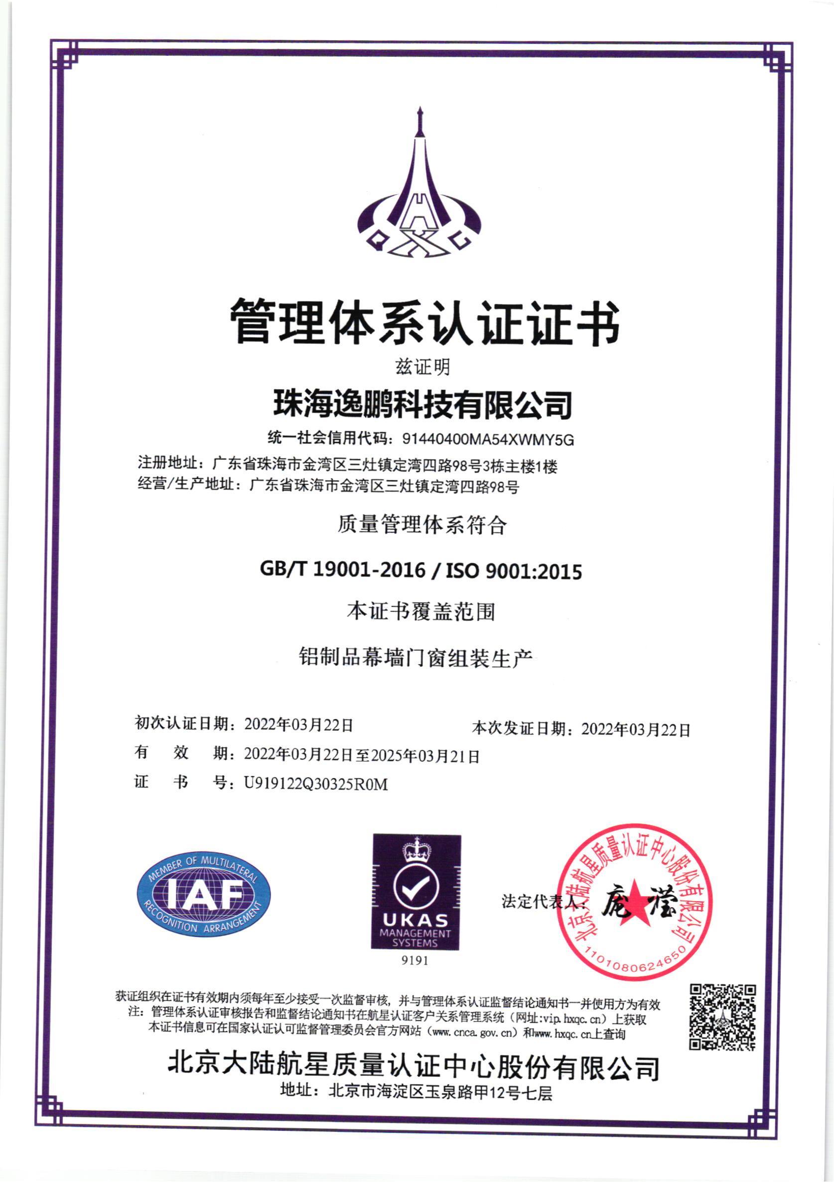 證書(shū)類(lèi)型: 質(zhì)量管理體系