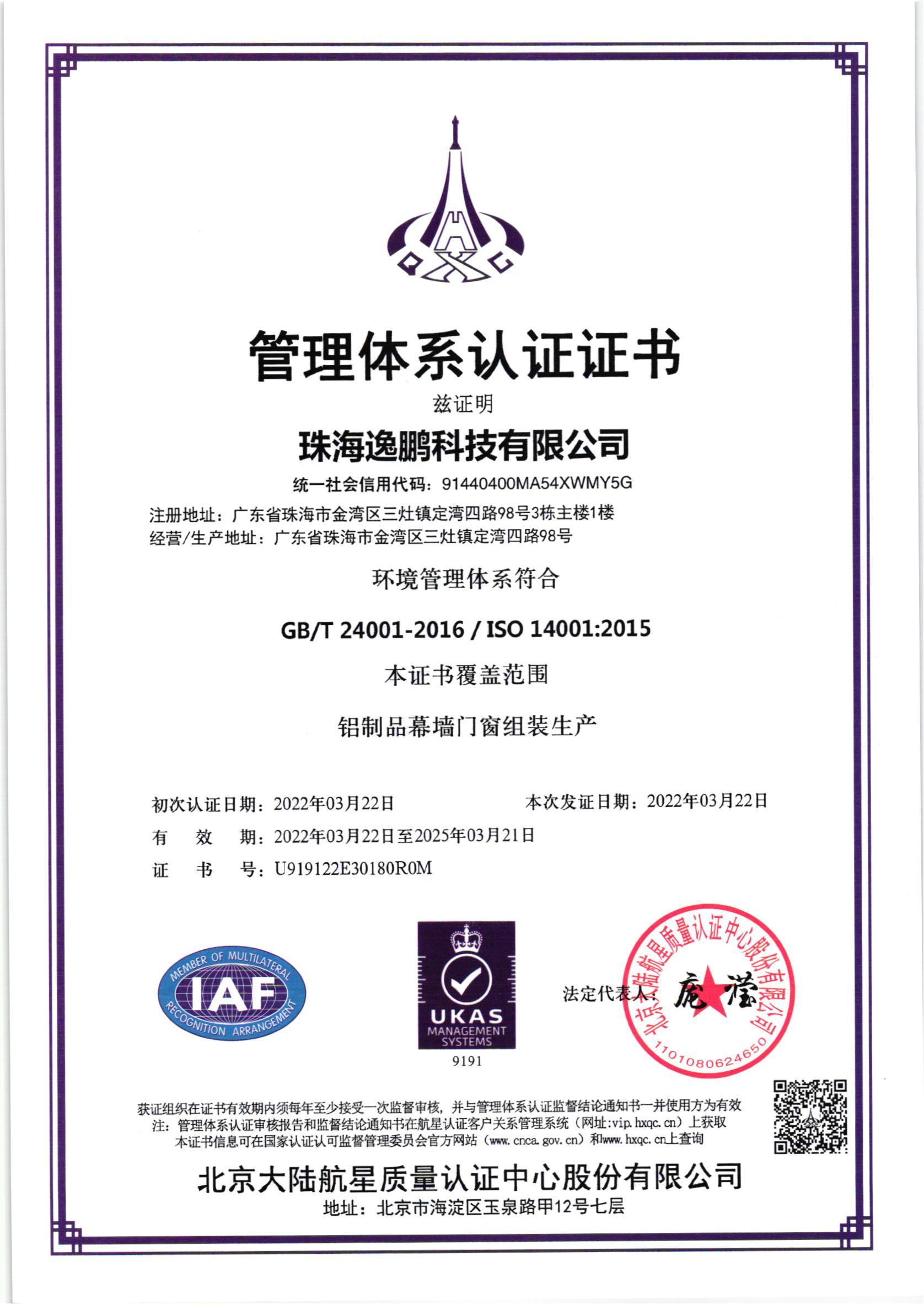 證書(shū)類(lèi)型: 環(huán)境管理體系
