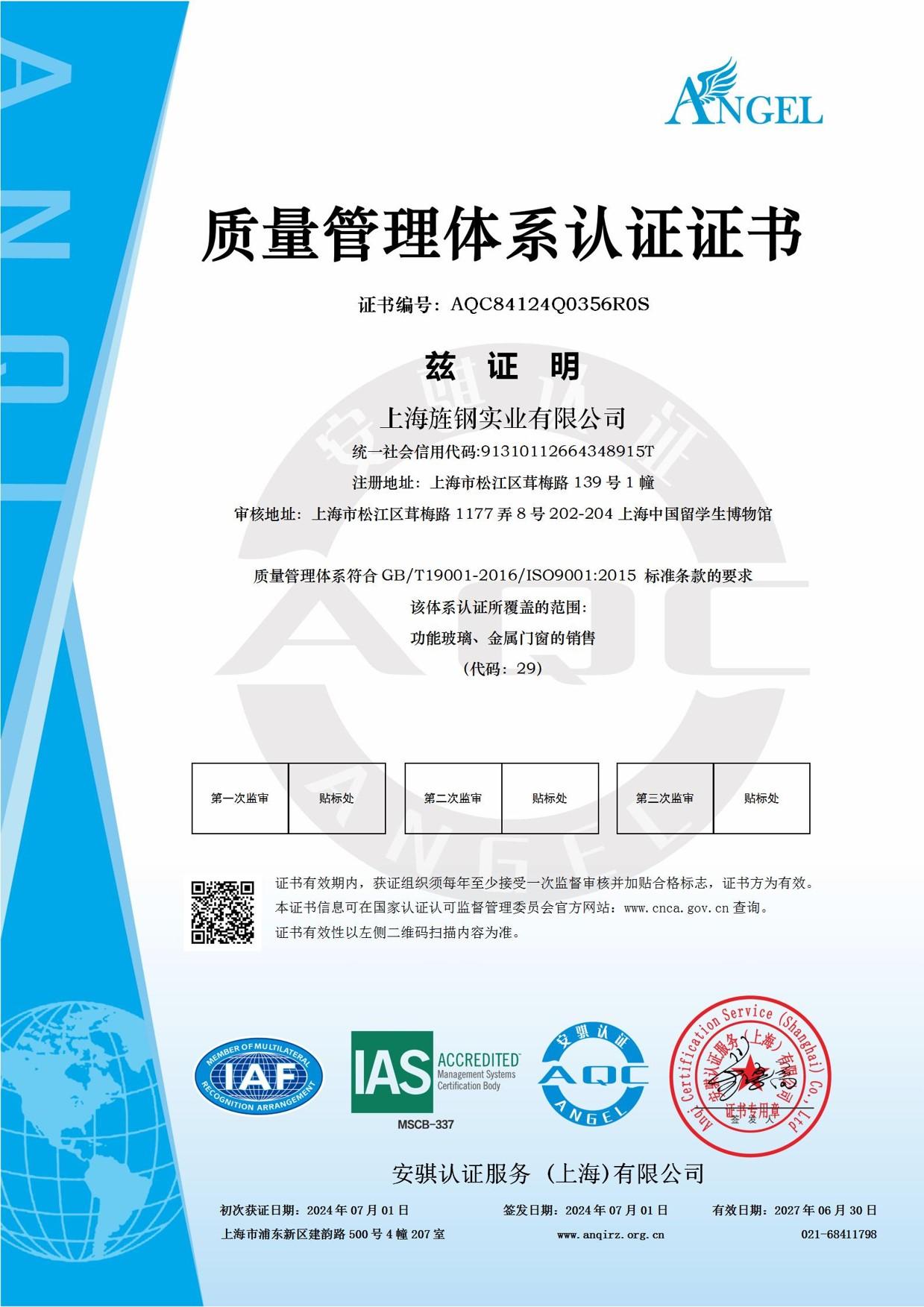 證書類型: GB/T19001-2016/ISO9001:2015