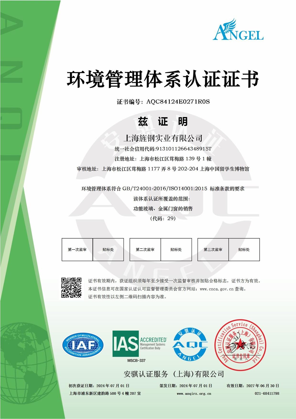 證書類型: GB/T24001-2016/ISO14001;2015 Standard
