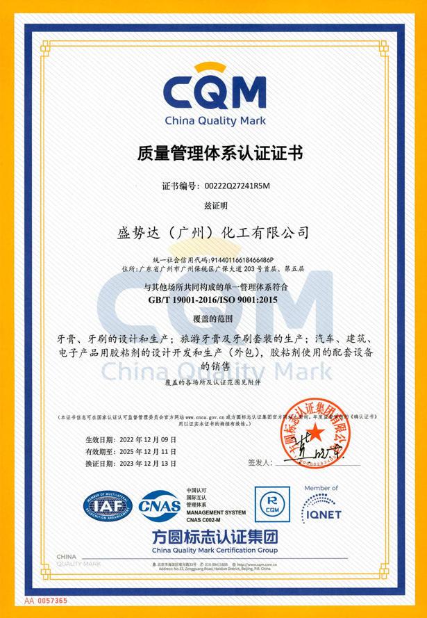 證書名稱: ISO9001:2015質量管理體系認證