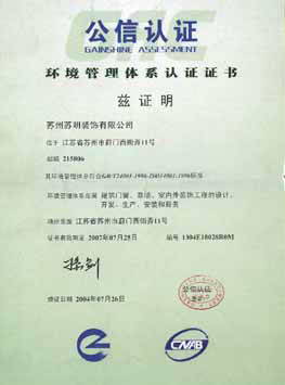 證書名稱: 環(huán)境管理體系認(rèn)證證明