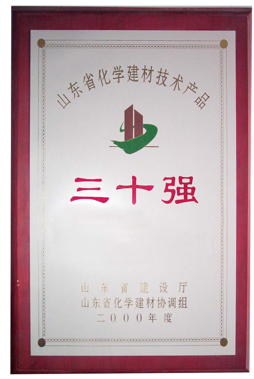 證書名稱: 山東省化學(xué)建材技術(shù)產(chǎn)品三十強(qiáng)