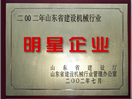 證書名稱: 2002年山東省建設(shè)機(jī)械行業(yè)明星企業(yè)