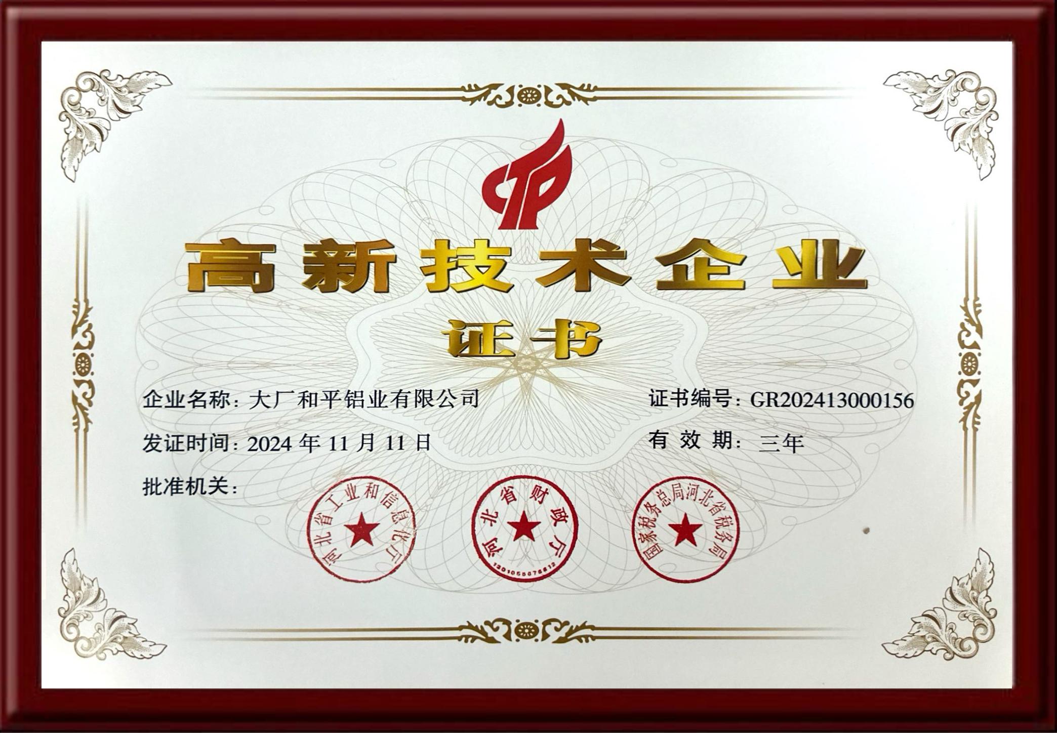 證書名稱: 高新技術企業(yè)
