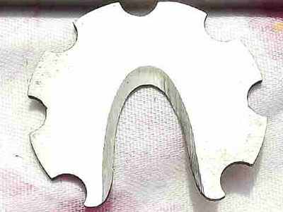 (3).增設(shè)強(qiáng)壓功能。即對(duì)卸料鑲塊壓料部加厚尺寸(正常的卸料鑲塊厚H+0.03mm),以增加對(duì)凹模側(cè)材料的壓力,從而抑制沖切時(shí)沖壓件產(chǎn)生翻料、扭曲變形。 (4).凸模刃口端部修出斜面或弧形。這是減緩沖裁力的有效方法。減緩沖裁力,即可減輕對(duì)凹模側(cè)材料的拉伸力,從而達(dá)到抑制沖壓件產(chǎn)生翻料、扭曲的效果。 (5).日常模具生產(chǎn)中,應(yīng)注意維護(hù)沖切凸、凹模刃口的鋒利度。當(dāng)沖切刃口磨損時(shí),材料所受拉應(yīng)力將增大,從而沖壓件產(chǎn)生翻料、扭曲的趨向加大。 (6).沖裁間隙不合理或間隙不均也是產(chǎn)生沖壓件翻料、扭曲的原因,需加以克服。