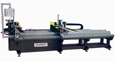 鋁門窗雙頭組角機是高檔鋁門窗專用設備,可一次完成兩個角的角碼式?jīng)_鉚聯(lián)接。