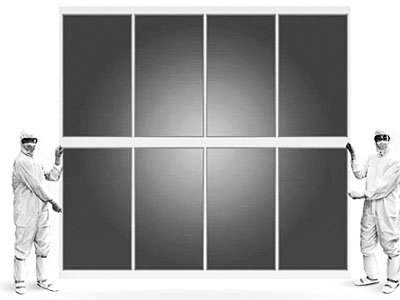 超薄玻璃基板是一種液晶玻璃基板,它是構成液晶顯示器件的一個基本部件。這是一種表面極其平整的浮法生產薄玻璃片。液晶玻璃基板 液晶玻璃基板是液晶平板顯示器的重要組成部分,具有十分廣闊的發展前景。液晶玻璃基板是如何制造的 目前在商業上應用的玻璃基板,其主要厚度為0.7 mm及0.6m m,且即將邁入更薄(如0.4mm)厚度之制程。基本上,一片TFT- LCD面板需使用到二片玻璃基板,分別供作底層玻璃基板及彩色濾光片(COLOR FILTER)之底板使用。一般玻璃基板制造供貨商對于液晶面板組裝廠及其彩色濾光片加工制造廠之玻璃基板供應量之比例約為1:1.1至1:1.3左右。 LCD所用之玻璃基板概可分為堿玻璃及無堿玻璃兩大類;堿玻璃包括鈉玻璃及中性硅酸硼玻璃兩種,多應用于TN及STN LCD上,主要生產廠商有日本板硝子(NHT)、旭硝子(Asahi)及中央硝子(Central Glass)等,以浮式法制程生產為主;無堿玻璃則以無堿硅酸鋁玻璃(Alumino Silicate Glass,主成分為SiO2、Al2O3、B2O3及BaO等)為主,其堿金屬總含量在1%以下,主要用于TFT- LCD上,領導廠商為美國康寧(Corning)公司,以溢流熔融法制程生產為主。 能夠提供大尺寸液晶屏幕玻璃基板的廠商只有美國康寧、日本旭硝子等四家,其中美國康寧占據51%的市場,日本旭硝占據28%的份額,而能夠為5代以上生產線提供配套的也只有這兩家,雖然玻璃基板只占據TFT-LCD產品成本的6%-7%,但技術上的寡頭壟斷讓玻璃基板產品成為TFT-LCD上游材料占據主導的零配產品。國內彩虹等自己上馬的TFT-LCD玻璃項目應該得到特別的支持與鼓勵。 超薄平板玻璃基材之特性主要取決于玻璃的組成,而玻璃的組成則影響玻璃的熱膨脹、黏度(應變、退火、轉化、軟化和工作點)、耐化學性、光學穿透吸收及在各種頻率與溫度下的電氣特性,產品質量除深受材料組成影響外,也取決于生產制程。 玻璃基板在TN/STN、TFT-LCD應用上,要求的特性有表面特性﹑耐熱性﹑耐藥品性及堿金屬含量等;以下僅就影響TFT- LCD用玻璃基板之主要物理特性說明如下: 1.張力點(Strain Point):為玻璃密積化的一種指標,須耐光電產品液晶顯示器生產制程之高溫。 2.比重:對TFT- LCD而言,筆記型計算機為目前最大的市場,因此該玻璃基板之密度越小越好,以便于運送及攜帶。 3.熱膨脹系數:該系數將決定玻璃材質因溫度變化造成外觀尺寸之膨脹或收縮之比例,其系數越低越好,以使大屏幕之熱脹冷縮減至最低。 其余有關物理特性之指標尚有熔點、軟化點、耐化學性、機械強度、光學性質及電氣特性等,皆可依使用者之特定需求而加以規 整個玻璃基板的制程中,主要技術包括進料、薄板成型及后段加工三部分,其中進料技術主要控制于配方的好壞,首先是在高溫的熔爐中將玻璃原料熔融成低黏度且均勻的玻璃熔體,不但要考慮玻璃各項物理與化學特性,并需在不改變化學組成的條件下,選取原料最佳配方,以便有效降低玻璃熔融溫度,使玻璃澄清,同時達到玻璃特定性能,符合實際應用之需求。而薄板成型技術則攸關尺寸精度、表面性質和是否需進一步加工研磨,以達成特殊的物理、化學特性要求,后段加工則包含玻璃之分割、研磨、洗凈及熱處理等制程。 到目前為止,生產平面顯示器用玻璃基板有三種主要之制程技術,分別為浮式法(Float Technology)、流孔下引法(Slot Down Draw)及溢流熔融法(Overflow Fusion Technology)。“浮式法”因系水平引伸的關系,表面會產生傷痕及凹凸,需再經表面研磨加工,故投資金額較高,惟其具有可生產較寬之玻璃產品(寬幅可達2 . 5公尺)且產能較大(約達1 0萬平方公尺/月)之優點;“溢流熔融法”有表面特性較能控制、不用研磨、制程較簡單等優點,特別適用于產制厚度小于2 m m的超薄平板玻璃,但生產之玻璃寬幅受限于1.5米以下,產能因而較小。浮式法可以生產適用于各種平面顯示器使用之玻璃基板,而溢流熔融法目前則僅應用于生產TFT- LCD玻璃基板。以下僅就上述三種制程技術分別說明如下:(1)浮式法: 為目前最著名的平板玻璃制造技術,該法系將熔爐中熔融之玻璃膏輸送至液態錫床,因黏度較低,可利用檔板或拉桿來控制玻璃的厚度,隨著流過錫床距離的增加,玻璃膏便漸漸的固化成平板玻璃,再利用導輪將固化后的玻璃平板引出,再經退火、切割等后段加工程序而成。 以浮式法生產超薄平板玻璃時應控制較低之玻璃膏進料量,先將進入錫床的玻璃帶(Ribbon)冷卻至700℃左右,此時玻璃帶的黏度約為108泊(Poise;1泊= 1g/cm·sec ),再利用邊緣滾輪拉住浮于液態錫上的玻璃膏,并向外展拉后,再將玻璃帶加熱到850℃,配合輸送帶滾輪施加外力拉引而成,以浮式法技術拉制超薄平板玻璃如圖三所示。 浮式法技術系采用水平引出的方式,因此比較容易利用拉長水平方向的生產線來達到退火的要求。浮式法技術未能廣泛應用于生產厚度小于2 m m超薄平板玻璃之主要原因乃系其無法達到所要求的經濟規模。舉例來說,浮式法技術的一日產量幾乎可以滿足目前臺灣市場之月消耗量;如果用浮式法技術生產超薄平板玻璃,一般多系以非連續式槽窯(DayTank)生產,因此該槽窯設計之最適化就顯得相當重要。(2)流孔下引法: 就平面顯示器所需的特殊超薄平板玻璃而言,有不少廠商是使用流孔下引法技術生產,該法系以低黏度的均質玻璃膏導入鉑合金所制成的流孔漏板( Slot Bushing )槽中,利用重力和下拉的力量及模具開孔的大小來控制玻璃