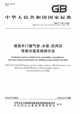 基本信息 標準號 StandardNo: GB/T 7106-2008 中文標準名稱 StandardTitle in Chinese: 建筑外門窗氣密、水密、抗風壓性能分級及檢測方法 英文標準名稱: Graduations and test methods of air permeability, watertightness, wind load resistance performance for building external windows and doors 發布日期 IssuanceDate: 2008-7-30 實施日期 ExecuteDate: 2009-3-1 首次發布日期 FirstIssuance Date: 1992-9-28 標準狀態 StandardState: 現行 復審確認日期 ReviewAffirmance Date: 計劃編號 Plan No: 20061025-T-333 代替國標號 ReplacedStandard: GB/T 7106-2002,GB/T 7107-2002,GB/T 7108-2002,GB/T 13685-1992,GB/T 13686-1992 被代替國標號 ReplacedStandard: 廢止時間 RevocatoryDate: 采用國際標準號 AdoptedInternational Standard No: ISO 6612:1980 采標名稱 AdoptedInternational Standard Name: 窗和門上高窗 抗風壓試驗 采用程度 ApplicationDegree: NEQ 采用國際標準 AdoptedInternational Standard: ISO 國際標準分類號(ICS): 91.060.50 中國標準分類號(CCS): Q70 標準類別 StandardSort: 方法 標準頁碼 Number ofPages: 標準價格(元) Price(¥): 主管部門 Governor: 住房和城鄉建設部 歸口單位 TechnicalCommittees: 住房和城鄉建設部 起草單位 DraftingCommittee: 中國建筑科學研究院等 其他補充 |